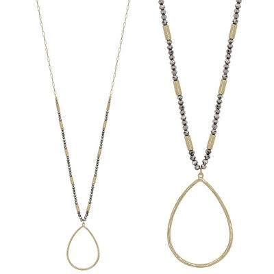 30-32in HEMATITE CRYSTAL NECKLACE WITH GOLD TEAR DROP NECKLACE