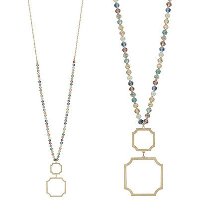 30-32in DARK MULTI CRYSTAL NECKLACE WITH DOUBLE METAL PENDANT NECKLACE