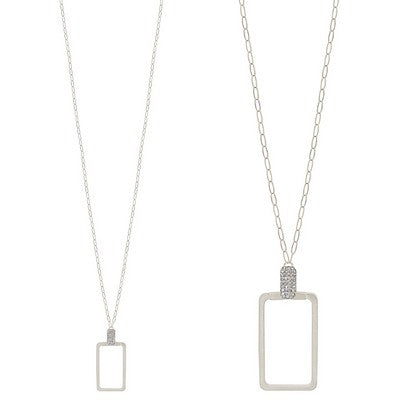 28-30in SILVER CHAIN WITH RECTANGLE AND DIAMOND PENDANT