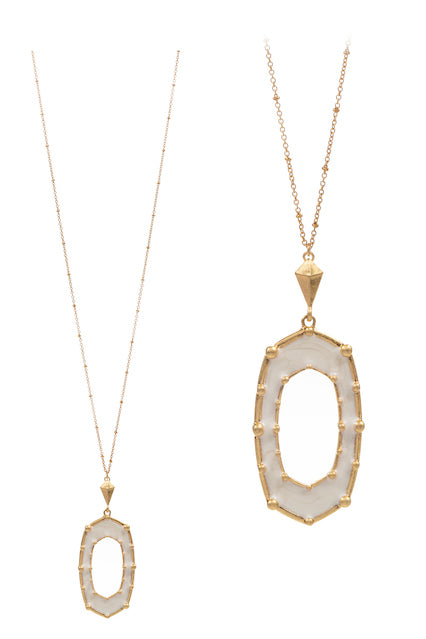 30-32in GOLD NECKLACE WITH WHITE HEXAGON SHAPED ENAMEL PENDANT