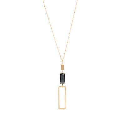 30-32in GOLD CHAIN NECKLACE WITH PINK QUARTZ AND GOLD RECTANGLE PENDANT