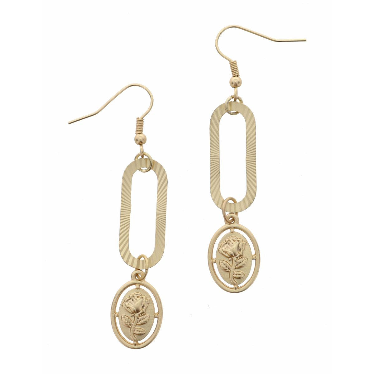 Gold Open Oval with Rose Stamped Disc Earring