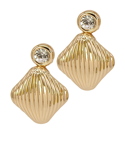 GS Textured Rhombus & Crystal Accent Earrings