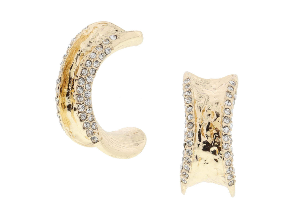JM Wide Hammered Gold Hoop with Crystal Edges