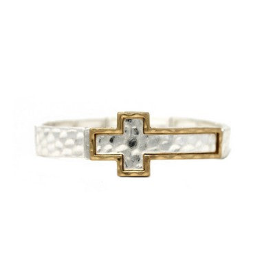 SILVER STRETCH BRACELET WITH GOLD CROSS ACCENT