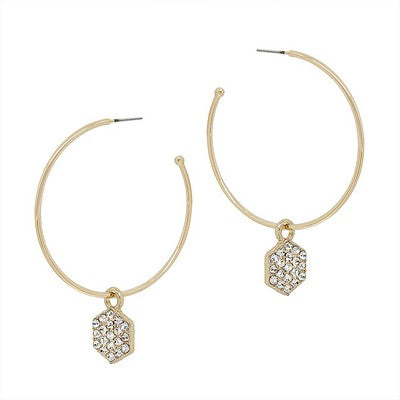 1 1/2in GOLD HOOP WITH DIAMOND ENCASED HEXAGON HOOP