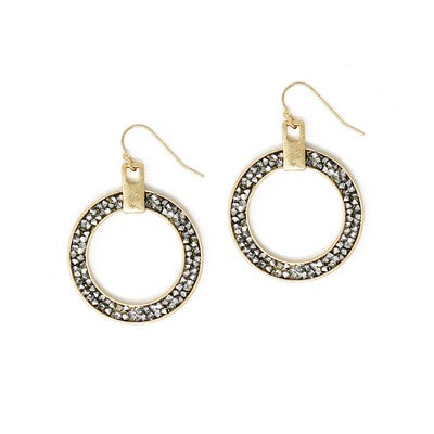 1 1/2in GOLD EARRING WITH HEMATITE CRYSTAL DANGLE EARRING