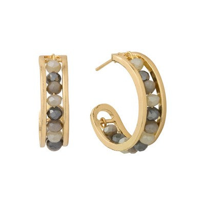 1in BEIGE MULTI ENCASED GOLD HOOP EARRING