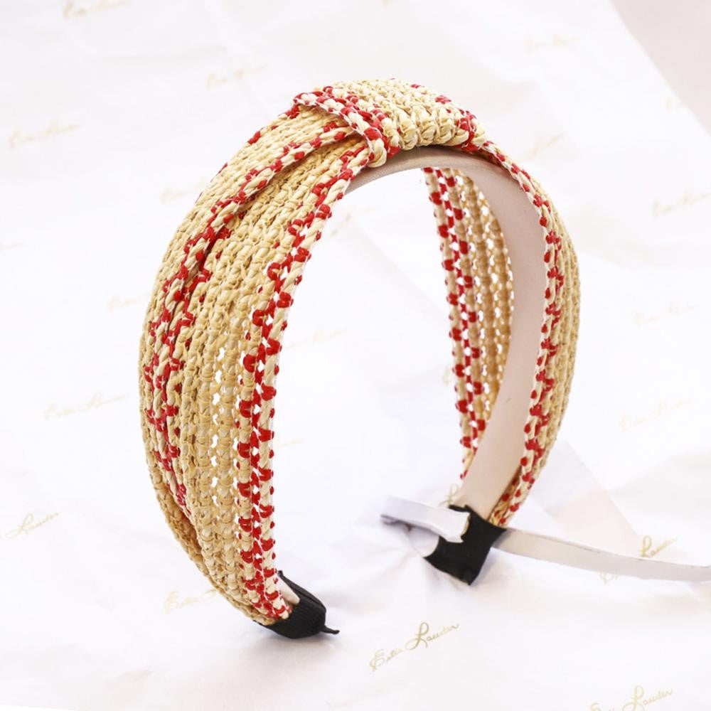 Two Toned Woven Straw Knotted Headband - Red