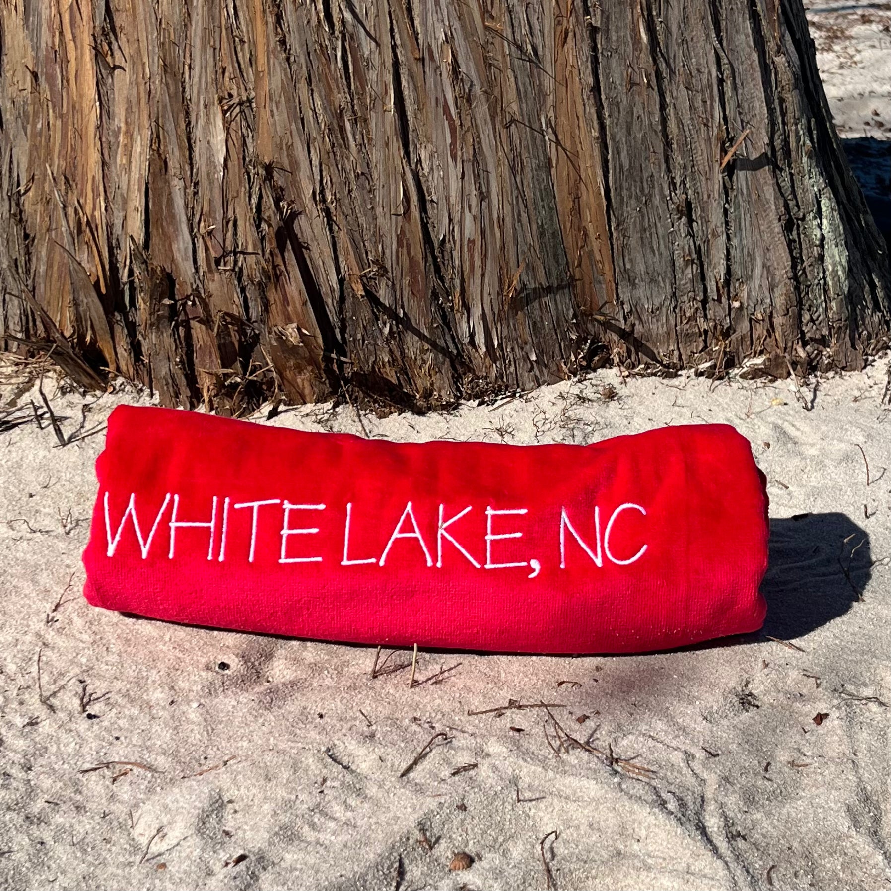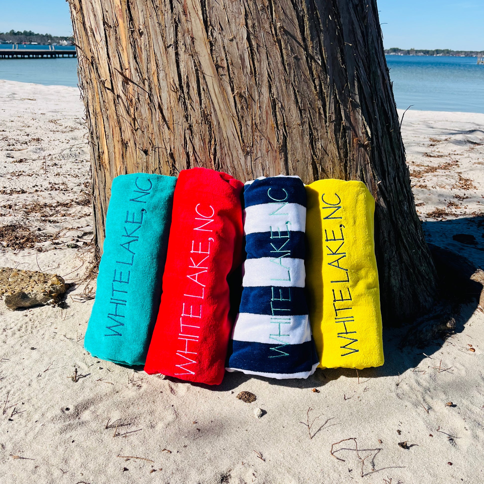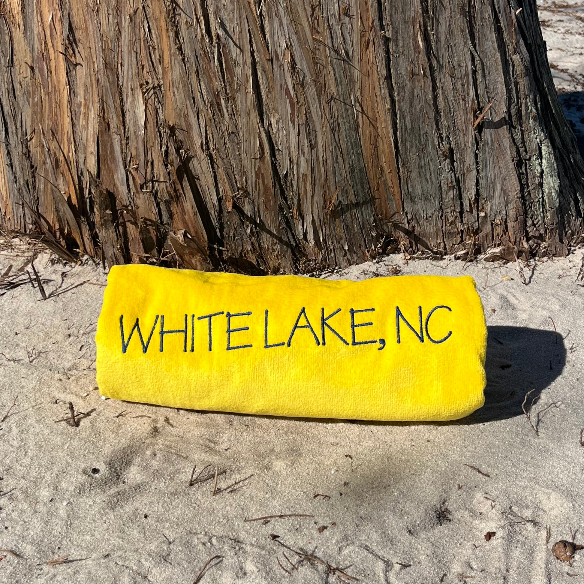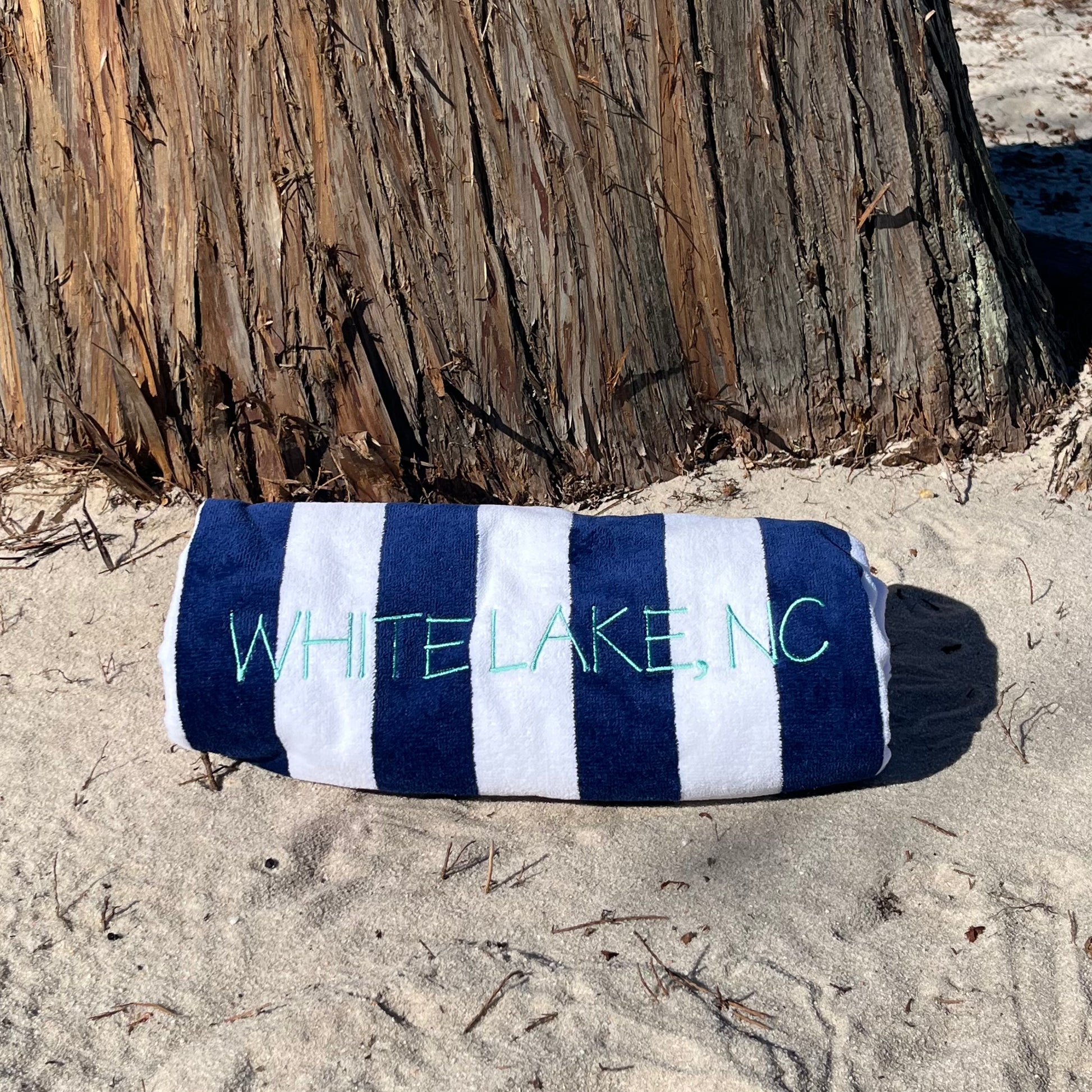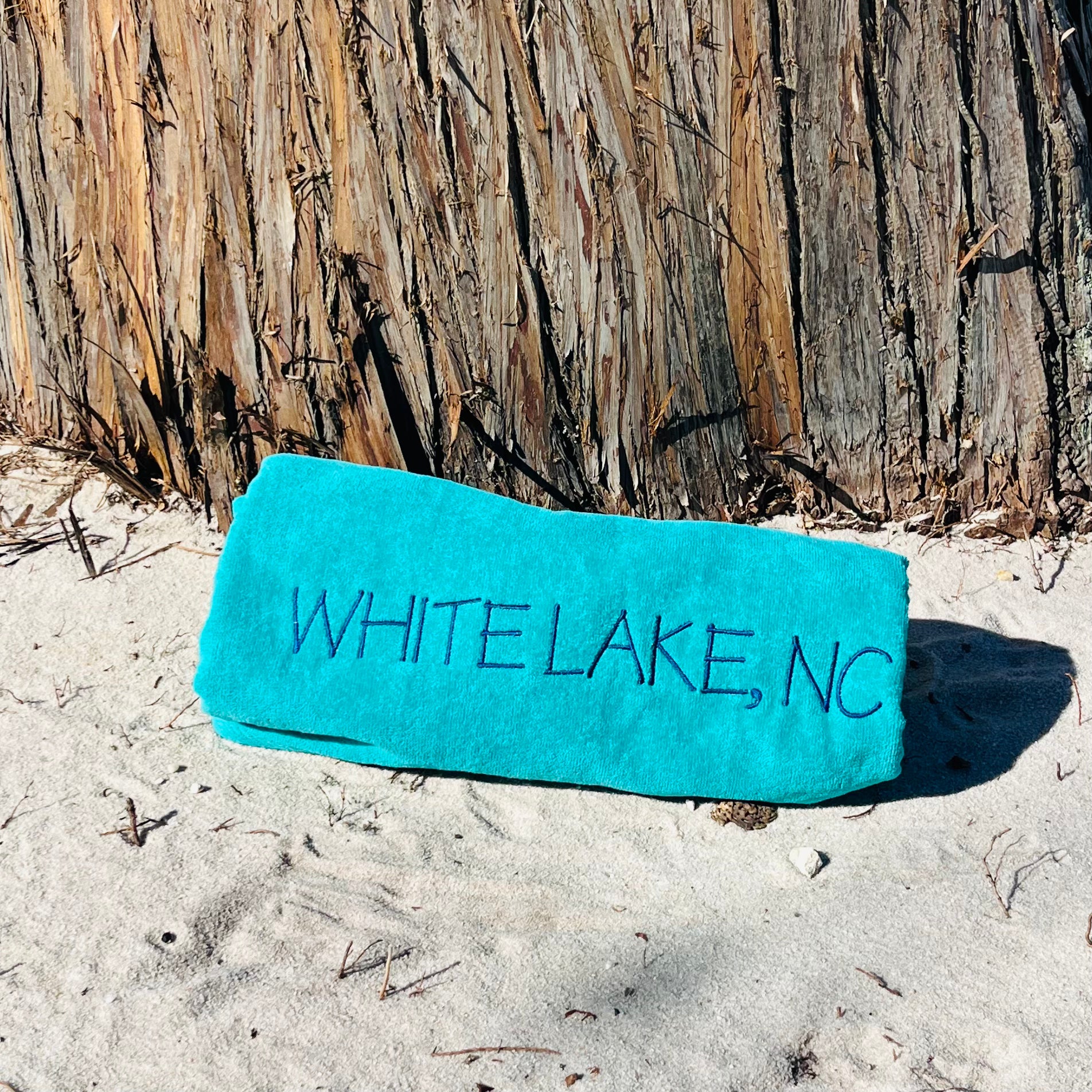 Plush “White Lake, NC “monogrammed towel. Exclusive to The Wake Shop.